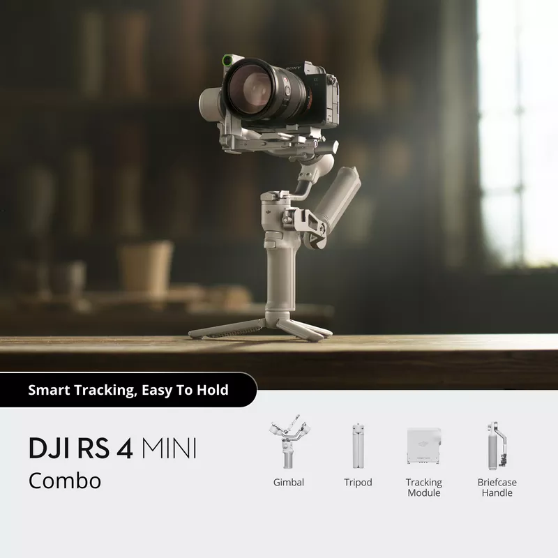 Introducing DJI RS 4 Mini Combo Gimbal Stabilizer, the all-new compact and lightweight gimbal for content creators. Featuring automated axis locks, intelligent tracking and composition, Teflon™ enhanced balancing, and 3rd-gen native vertical shooting, it empowers content creators and independent commercial videographers to roll with it in a more efficient and seamless filming experience.