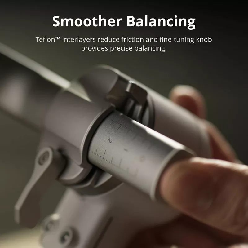 Previously used on DJI’s flagship gimbals, Teflon™ interlayers reduce friction for smoother balancing.