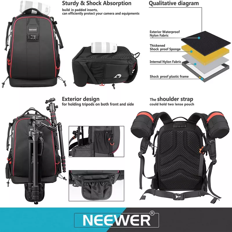 - Made of waterproof polyester and durable nylon with tough reinforced stitching for easy carry and protecting your camera and other accessories well.