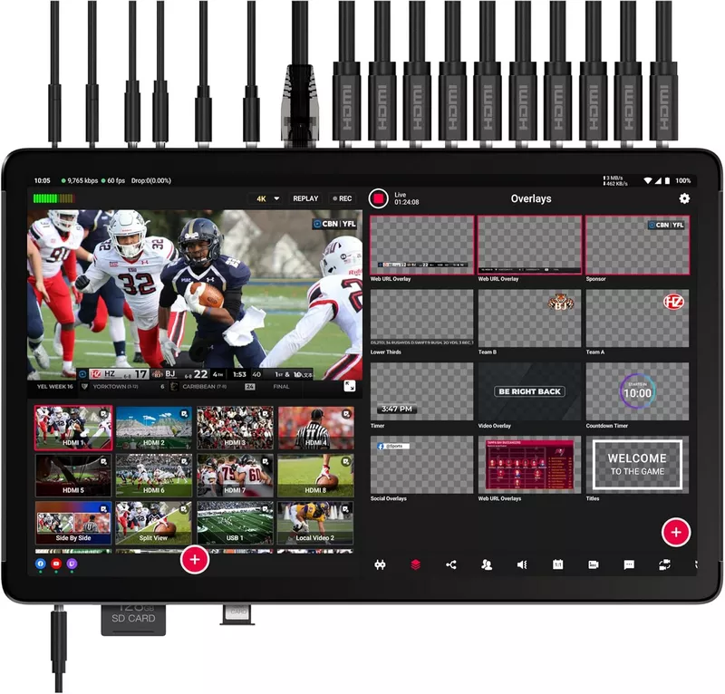 - MultiCam Instant Replay: With YOLOLIV YoloBox Extreme Replay highlights instantly with 6 cameras at 1080p60, all in real-time for sports, events, or live productions