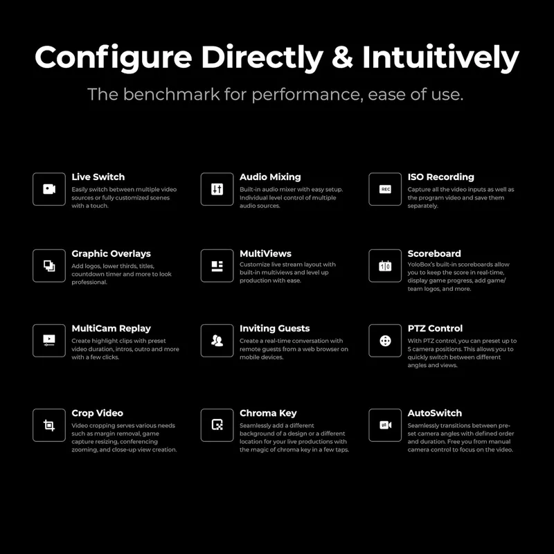 - ISO Recording for Every Input: With YOLOLIV YoloBox Extreme Record each input separately in up to 4K30 (5 inputs) or 1080p60 (6 inputs), providing unparalleled flexibility for editing and post-production needs
