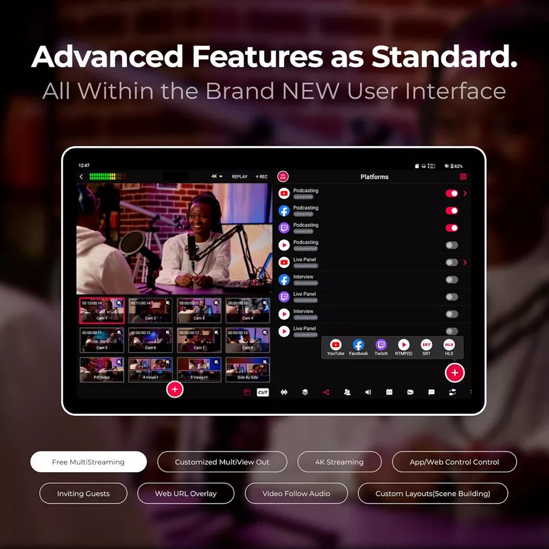 - Integrated Free NDI HX Support: Seamlessly incorporate up to 6 NDI(2 NDI FX or 6 NDI HX) inputs wirelessly or via Ethernet, making it ideal for modern IP-based workflows