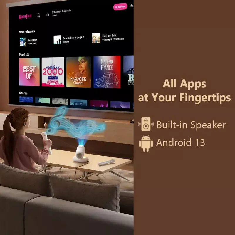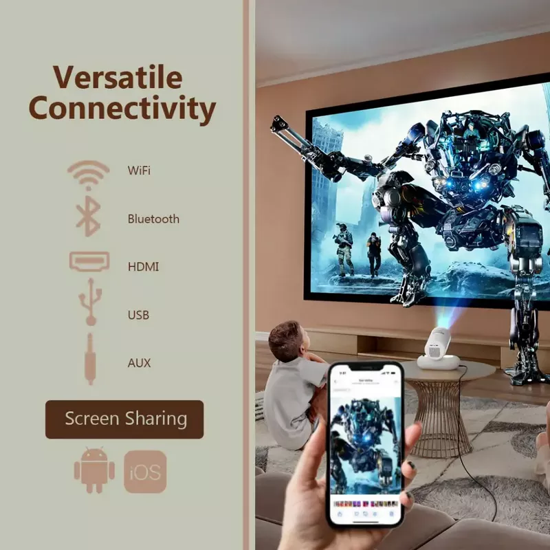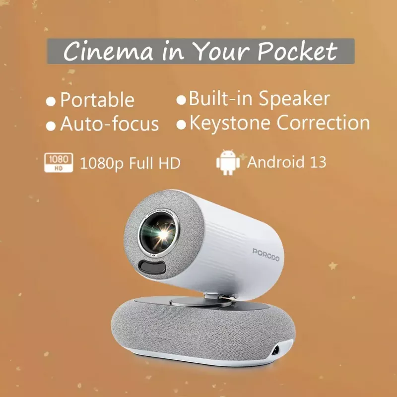 High Full HD 1080P resolution and various Cinematic screen sizes ranging from 30, maybe go higher up to 200, give the Porodo Lumacast Smart Full HD Projector an Engrossing visual treat. Auto Focus & Keystone features make adjustments to the projector so that the image is focused to the maximum possible degree, and nobody has to do this adjustment manually. Truly a versatile experience with smart features & app integration supported by Android 13. To enhance the audio experience, Bluetooth 5.4 ensures easy pairing to an audio device. HDMI, USB-A and 3.5mm headphone jack ports for added versatility. 230 ANSI lumens brightness ensures crisp visuals, bright enough even in scenarios with ambient light playing its part. For whatever you plan for an entertainment feast, this will work: indoor as well as outdoor presentations that tip the scales at only 1.3 kg, thus highly portable. The light source of a digital projector assures a 30,000-hour lifetime.