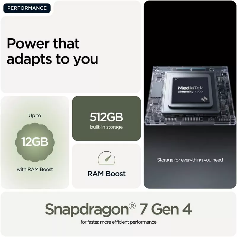 • 12GB RAM + 12GB RAM Boost, 512GB Internal Memory Storage