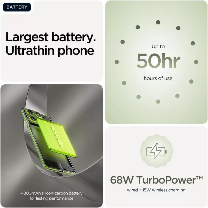 • Fast charging 68W wired, 15W wireless Charging