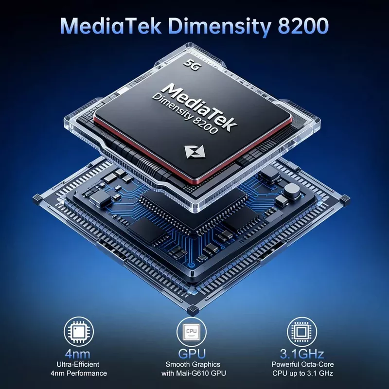 - MediaTek Dimensity 8200 4nm Octa-Core Processor – Ultra-efficient chip delivers smooth performance for gaming, videos, and multitasking.