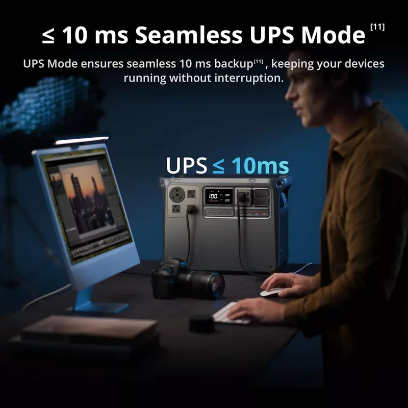 - Reliable Power Station in a Flash – DJI Power 2000 features seamless UPS with a 10 ms switch time—twice as fast as Power 1000—keeping your devices running smoothly during unexpected outages.